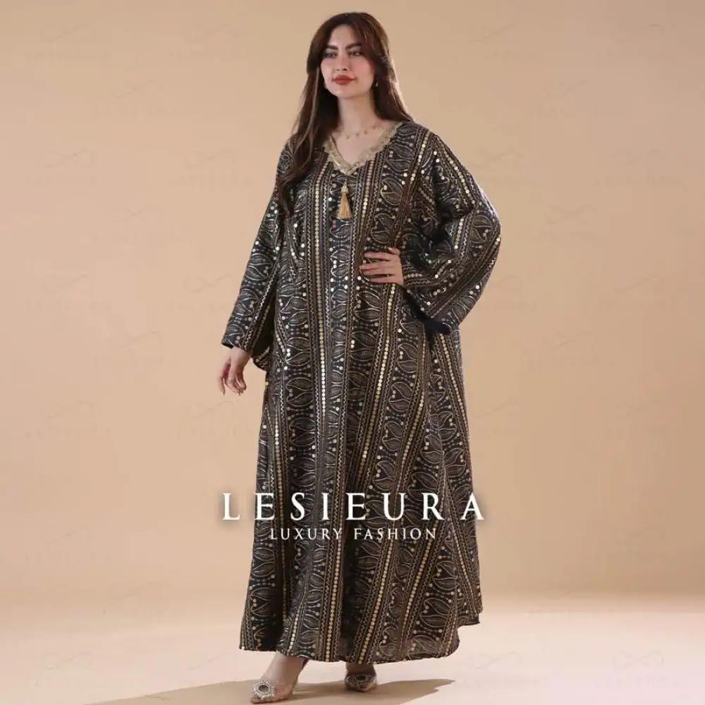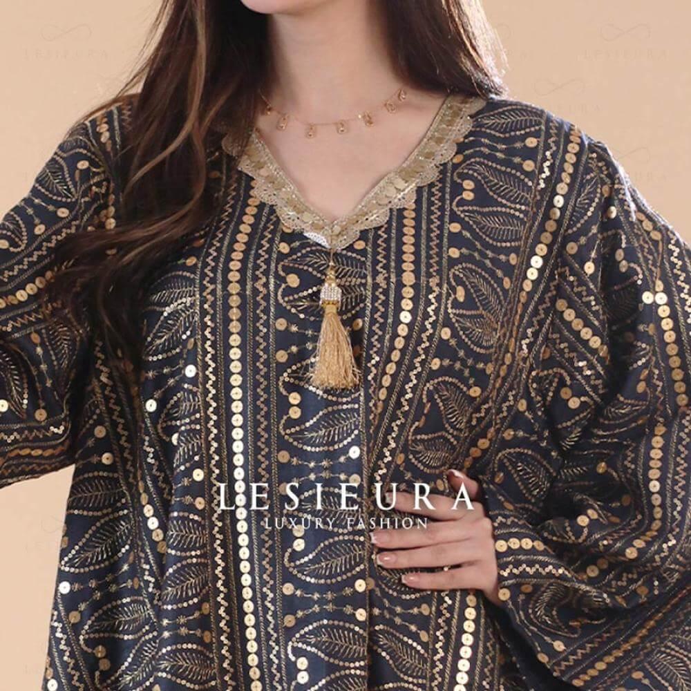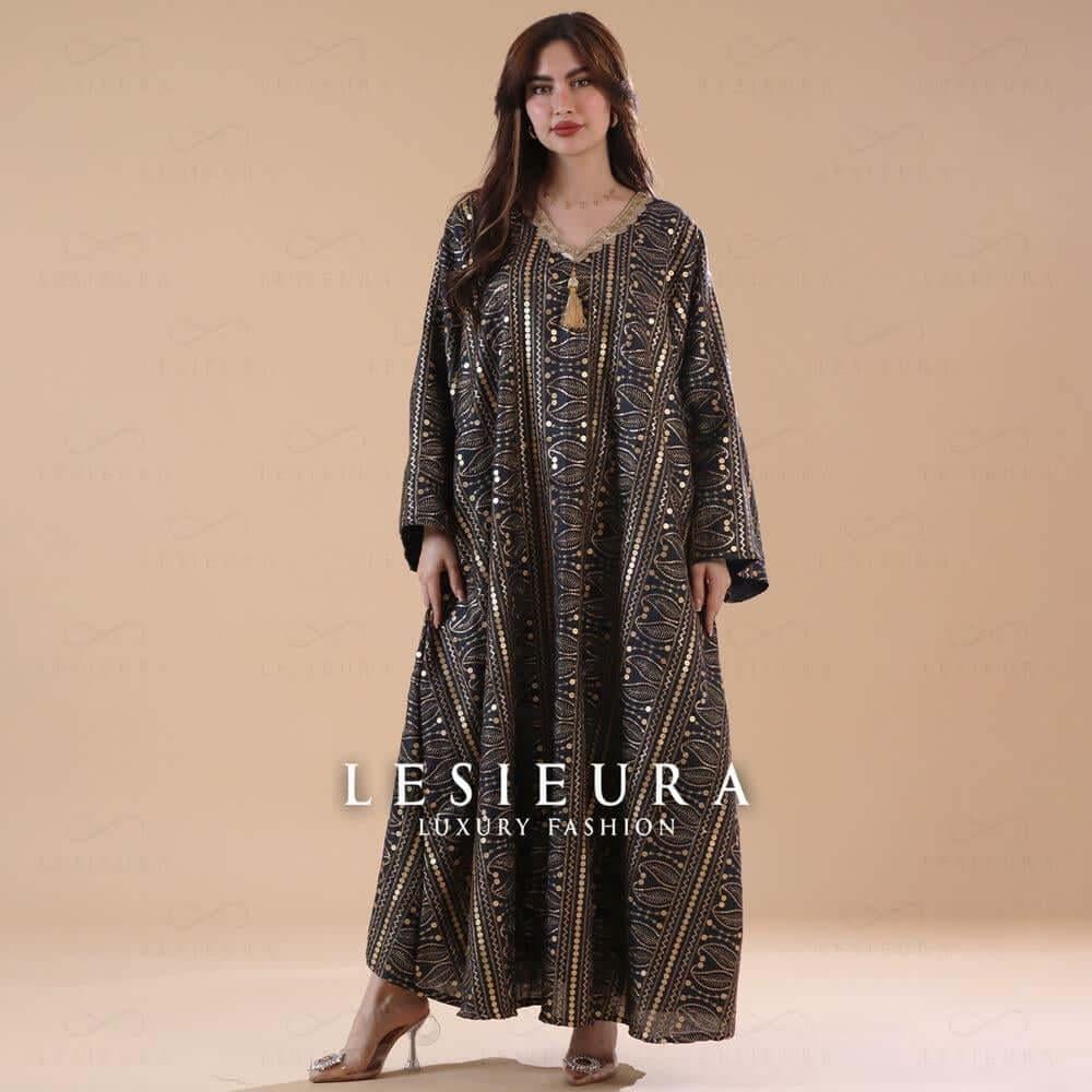 جلابية مطرزة بالترتر الفاخر الملون مع نقشات يدوية – إطلالة شرقية فاخرة