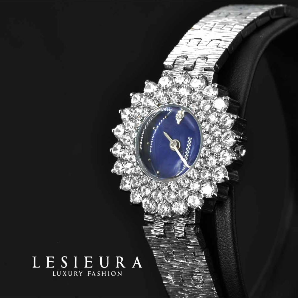 بمينا أزرق عميق كليلٍ صيفيّ صافٍ، وإطار مرصّع بأحجار متلألئة تنبض كنجوم الفجر، تأتي نُوفيلا كقصيدة صامتة تروى على المعصم،