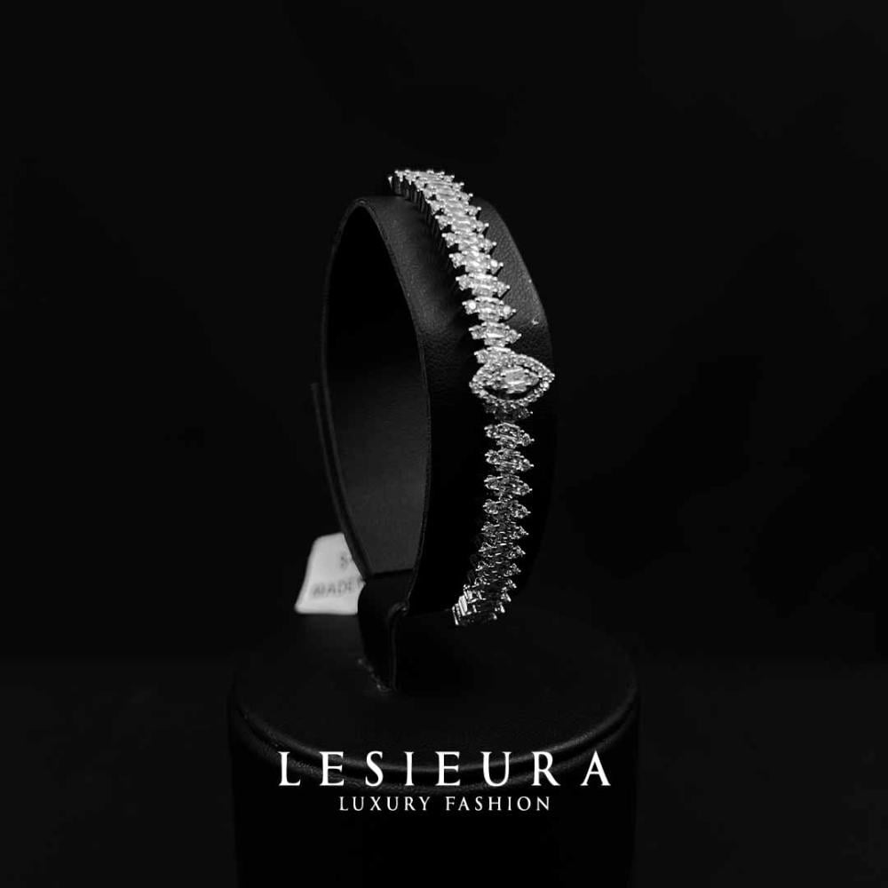 فصوص الزركون النقية، المصفوفة بإتقان يحاكي صفاء الألماس، تتناغم في خطوط متوازنة تمنحكِ حضورًا راقيًا يأسر الأنظار.