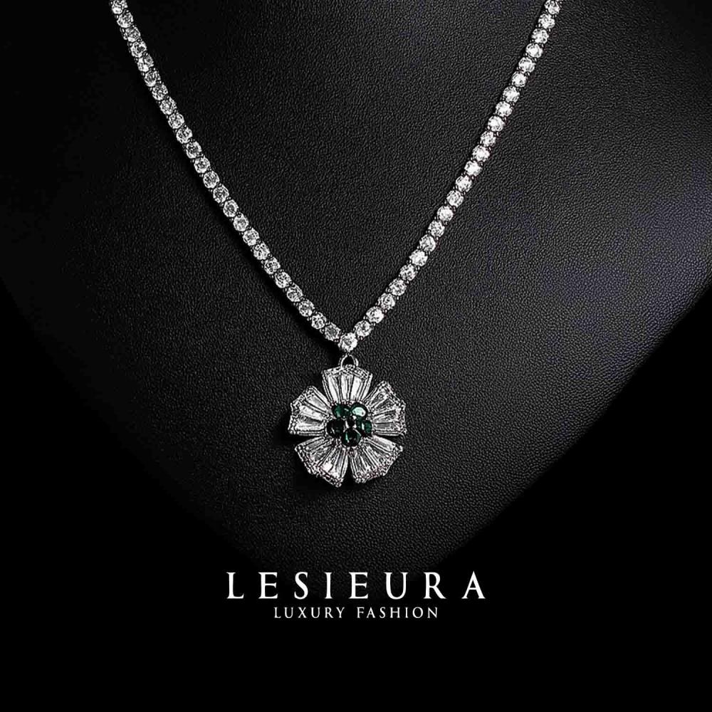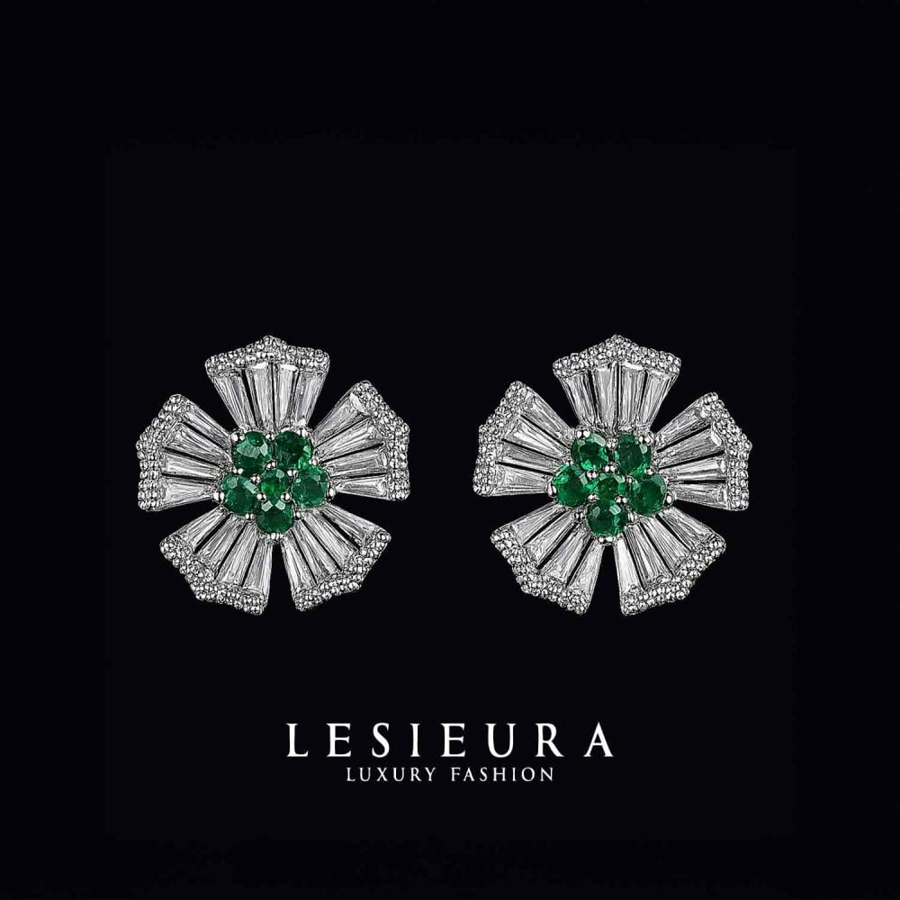 بتصميم مستوحى من الزهرة الملكية، تتوسط كل قطعة أحجار زمرد خضراء، تتلألأ كوميض الغابات الفاتنة، محاطة بفصوص براقة تشبه بتناسقها تناغم النغمات الكلاسيكية.