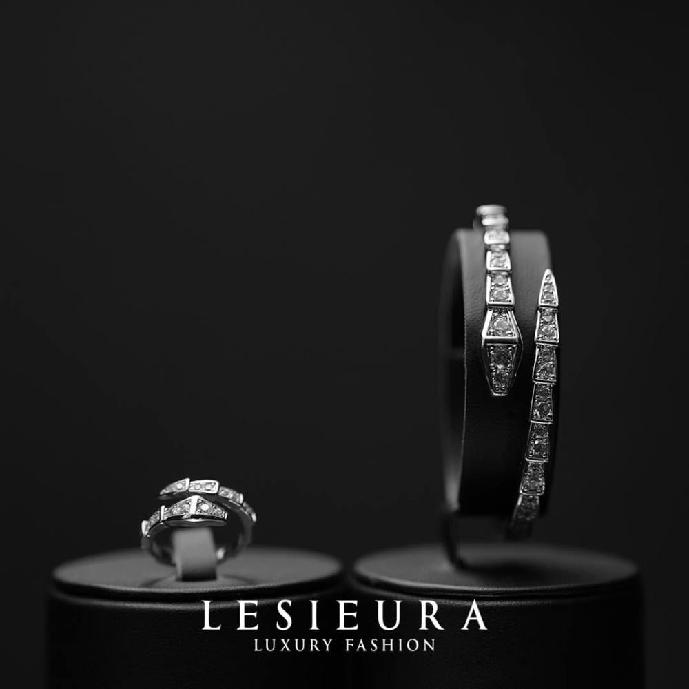 تميزي بإطلالة فريدة مع طقم بولغارا الراقي، المكوّن من أسورة وخاتم شبيه بولغري، بتصميم هندسي عصري مستوحى من جرأة وأناقة دار بولغري العالمية.