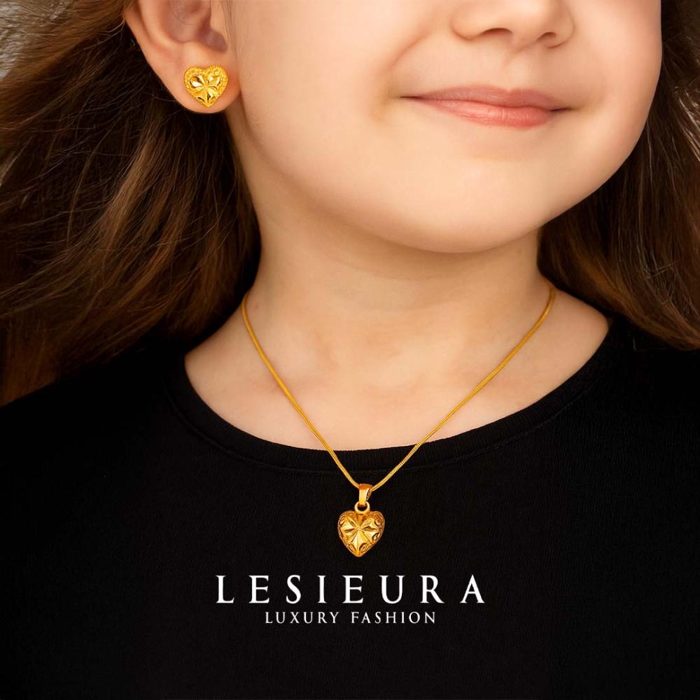 دلّلي صغيرتك ببريق ناعم ينبض بالحب مع طقم هارت لايت الذهبي من ليسيورا للأطفال، والمكوّن من سلسال لطيف وحلق أنيق بتصميم قلب ذهبي يعبّر عن المشاعر الجميلة والدفء الطفولي.