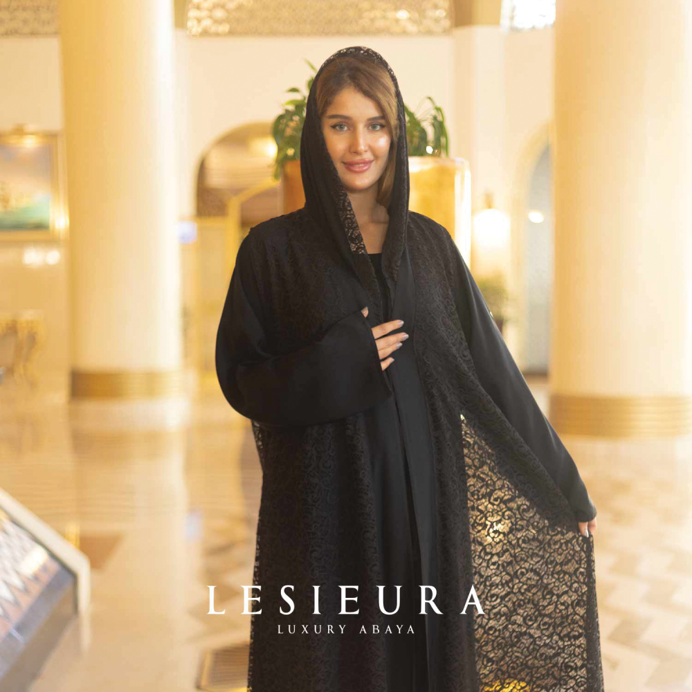 إن إضافة قماش الدانتيل الفاخر على العباية والطرحة تضفي عليها طابعًا أنثويًا فريدًا من نوعه. يتميز الدانتيل بنعومته ويضفي على العباية لمسة من الرقي لا مثيل لها ويجعل العباية مفعمة بالجمال، احصلي عليها الآن من متجر أزياء ليسيورا