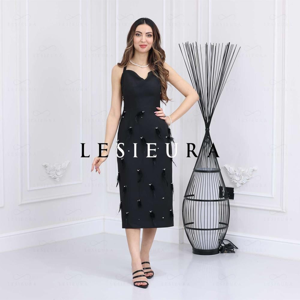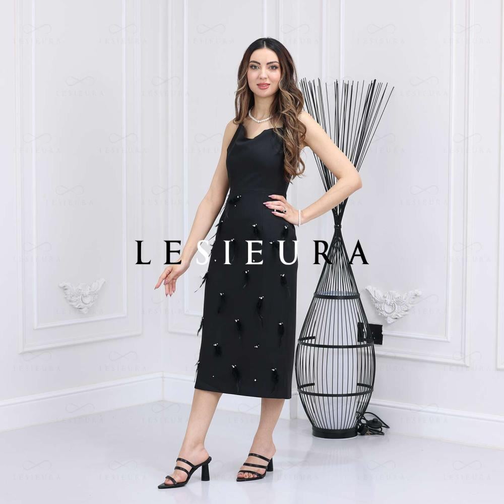 تألقي مع فستان سهرة اسود ناعم تم تصميم هذا الفستان الأسود ليكون الاختيار الأمثل للسهرات والمناسبات الخاصة، حيث يجمع بين الأناقة العصرية والفخامة التي لا تضاهى. فستان مزين بفصوص متناثرة وتضفي لمسة من الحيوية على إطلالتك، بينما يضيف الريش الطبيعي من الجهة السفلية لمسة من التميز والجمال. تصميمه الفريد يبرز جمالك بشكل رائع، فستان أنيق بتصميم توب مع حامل للرقبة لتثبيت الفستان، مما يضمن لك راحة تامة وثباتًا طوال الوقت، مما يجعله الخيار المثالي لمن تسعى للظهور بأبهى صورة. يضفي الفستان الأسود لمسة من الأنوثة والجاذبية، ليجعلك محط الأنظار في كل لحظة، اطلبيه الآن من متجر أزياء ليسيورا