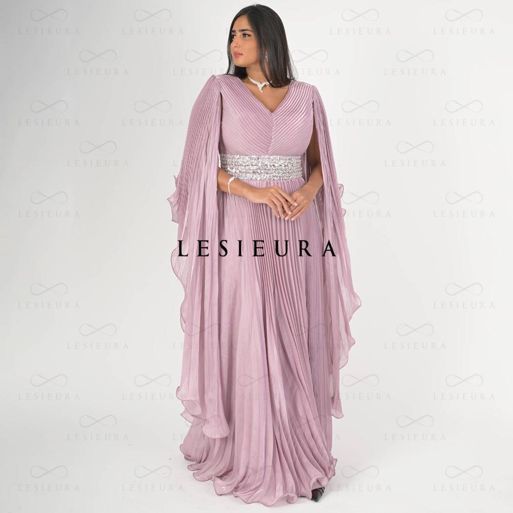 مواصفات فستان سهرة وردي بكسرات ناعمة مع تطريز فخم: