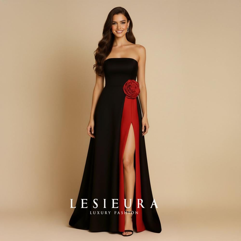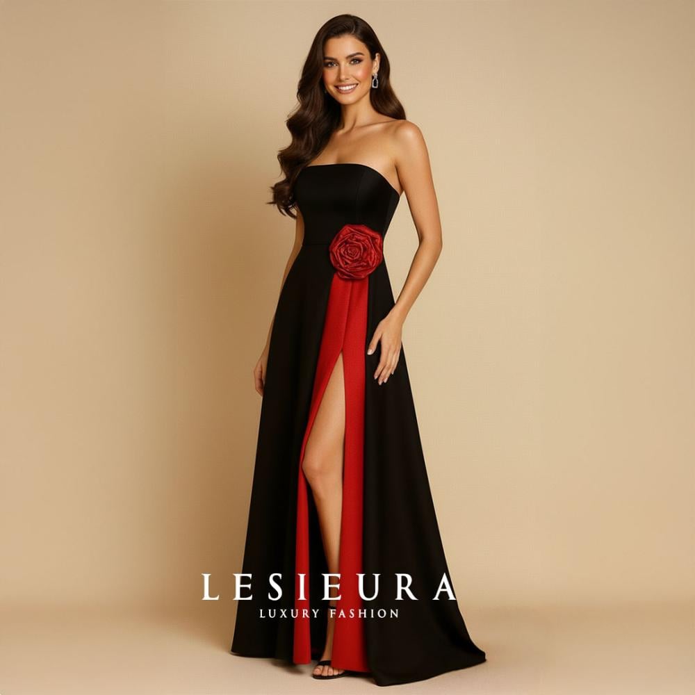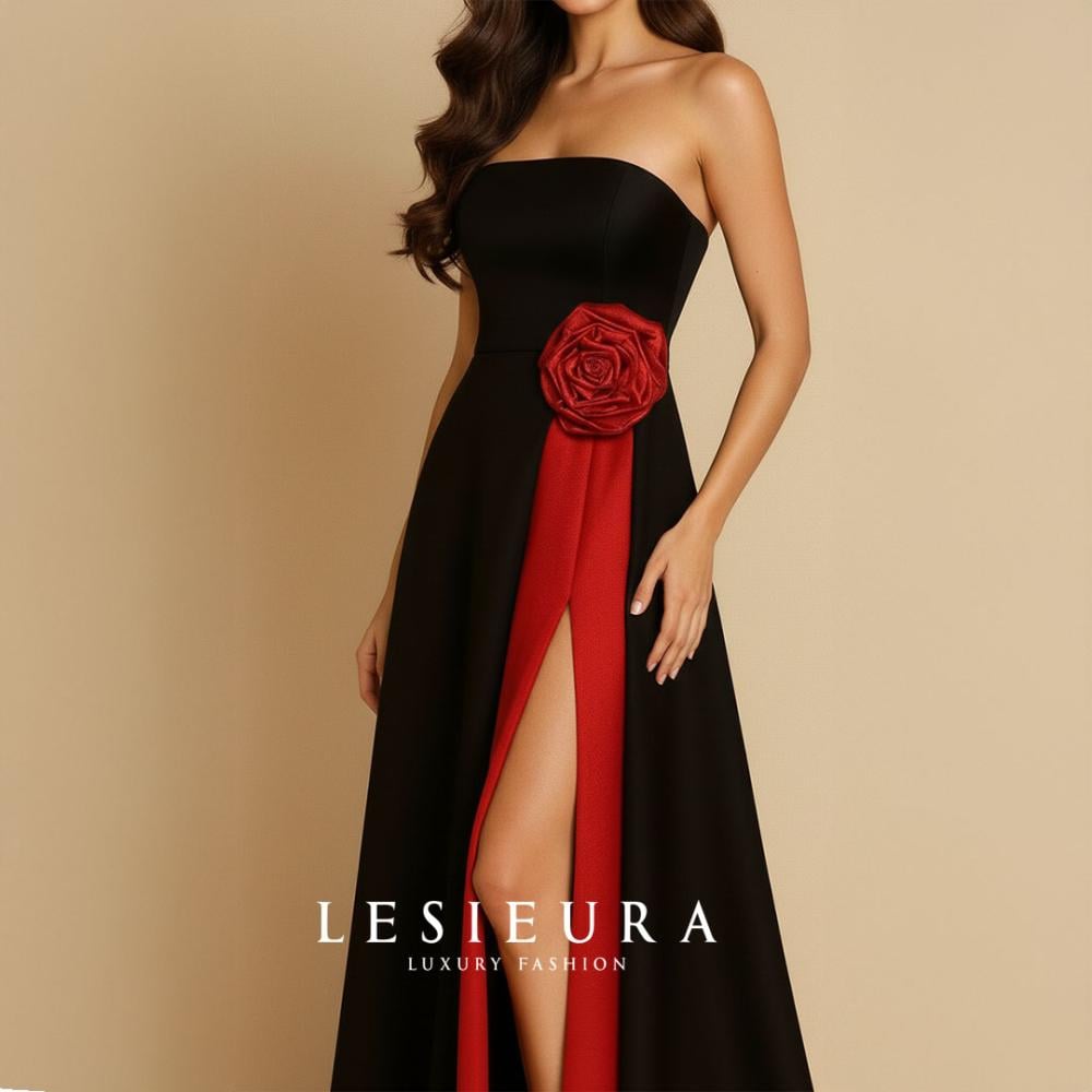 أمسكت بالمقص، وبدأت تقصّ القماش بخفة عاشقة تعرف ماذا تريد مزجت الأسود العميق بالأحمر الدافئ ثم ثبتت وردة حمراء على الخصر كأنها قلبٌ يخفق بالحياة وفي النهاية أضافت فتحة أمامية طويلة تمنح التصميم نبضًا من الجرأة الراقية حين ارتدت المرأة الفستان، لم تعد هي كما كانت...